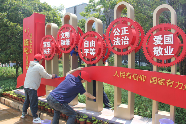 根據活動安排,勞動任務明確分工,按地域劃分為幾個板塊進行。在公司新區,十余名黨員在黨群工作部的現場分配下,負責擦拭黨建文化長廊的雕塑。大家拿著抹布,相互配合,仔細清理雕塑上的灰塵,讓每一處細節都煥發光彩,使黨建文化長廊更顯整潔莊重。