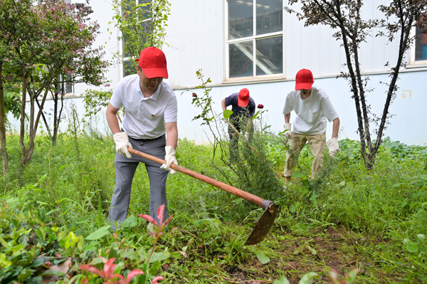 他們頂著夏日的炎熱,手持工具彎腰除草,不放過任何一處雜草叢生的角落,用汗水為廠區的綠化環境“減負”,讓綠化帶重現生機與美觀。