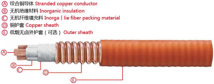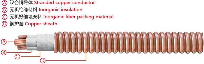 金屬護套無機礦物絕緣電纜采用先進的生產工藝,全自動機械化生產,質量可靠。產品結構先進,導體采用多股銅絞線、阻抗小、載流量大、柔軟性好; 絕緣采用耐高溫(1000℃)無機礦物絕緣云母帶繞包,絕緣層緊密均勻、耐潮濕、柔性好;護套采用銅護套(耐高溫),經連續軋紋而成。